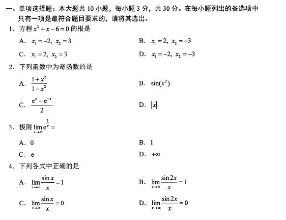 附:2018年4月上海自考高等數學(一)考試真題及答案